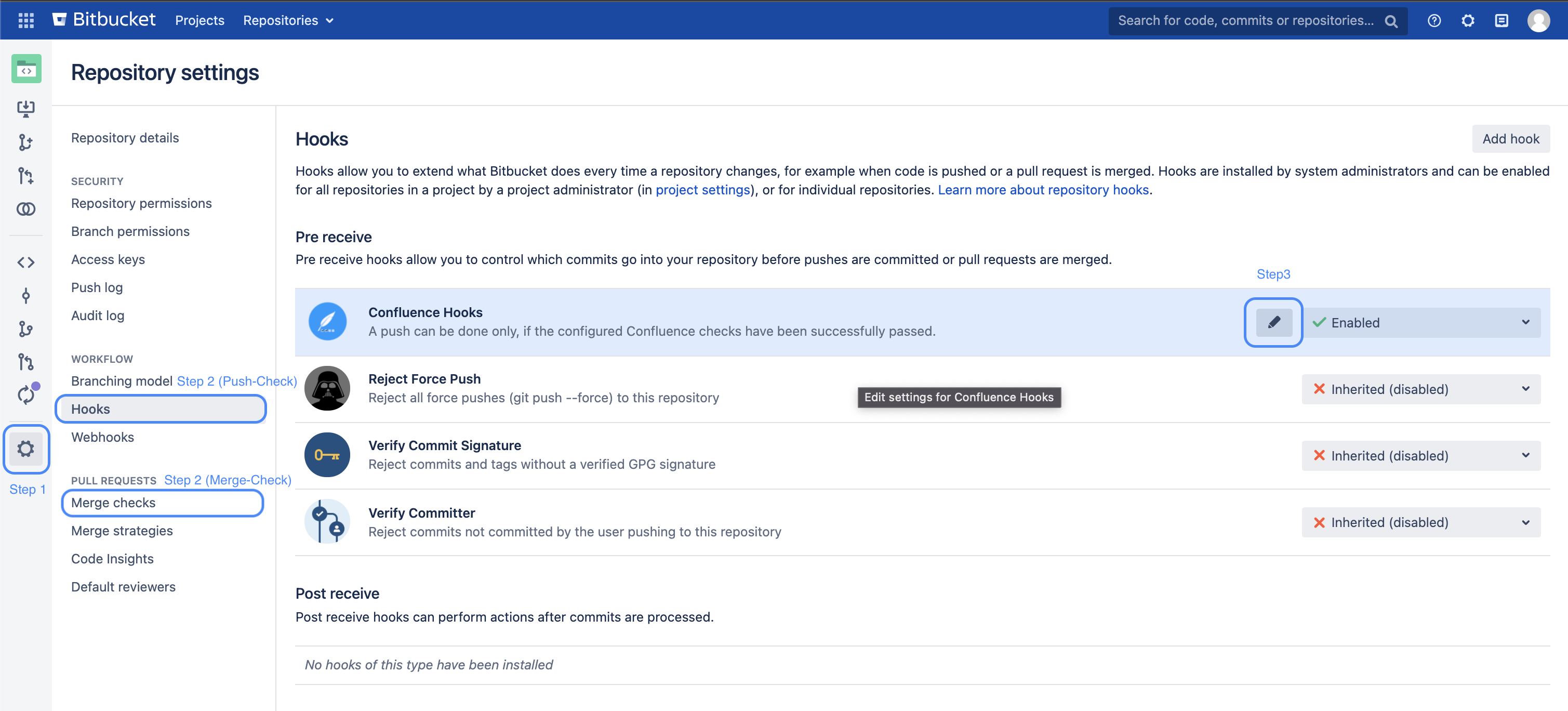 - Step 1: The configuration of the hook you will find in the administration area of your project or repository