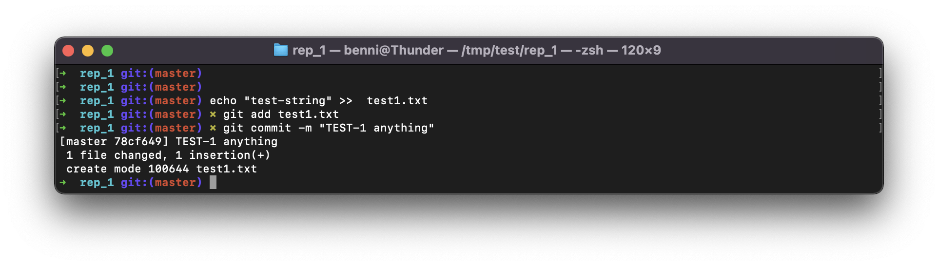 BASHecho "test-string" >> test1.txt git add test1.txt git commit -m "TEST-1 anything"
