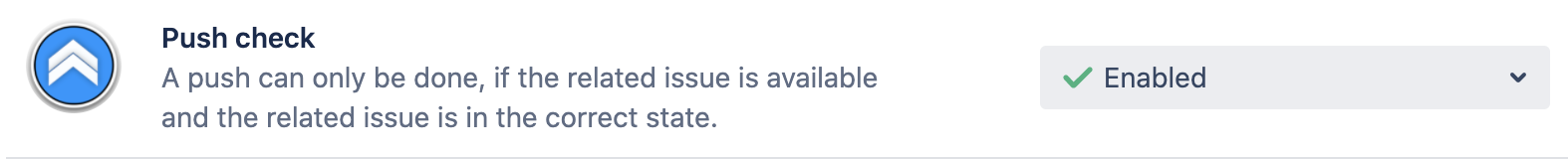 | JQL check | AVAILABLE | AVAILABLE | AVAILABLE | AVAILABLE | AVAILABLE | A push or merge can be done only, if the related issue matchs a given JIRA JQL expression. |