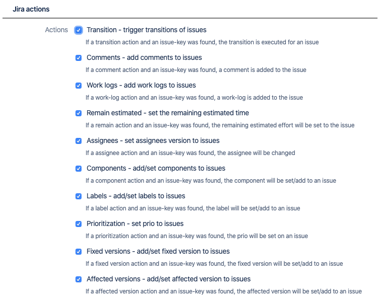 In the same way as the Jira actions the Bitbucket actions can be enabled exclusive. So you can decide which actions you would like to use and which actions you would like to ignore.